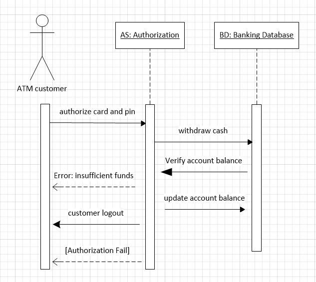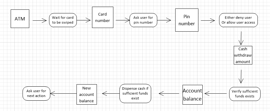 Based on your experience with a bank ATM, draw an activity diagram that models the data processing involved when a customer withdraws cash from the machine.