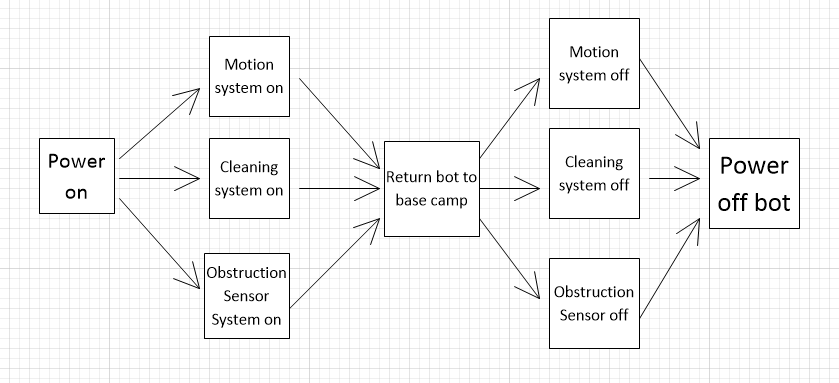 A robot floor-cleaner that is intended to clean relatively clear spaces such as corridors. The cleaner must be able to sense walls and other obstructions.
